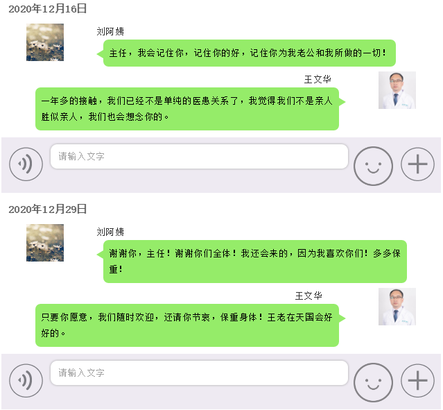 王先生于12月13日早晨經(jīng)搶救無效離開了人世,但是,劉阿姨與王文華主任的聯(lián)系更密切了,微信和電話成為了醫(yī)患之間的“連心橋”,讓NICU醫(yī)護(hù)人員對(duì)劉阿姨的愛還在延續(xù)……