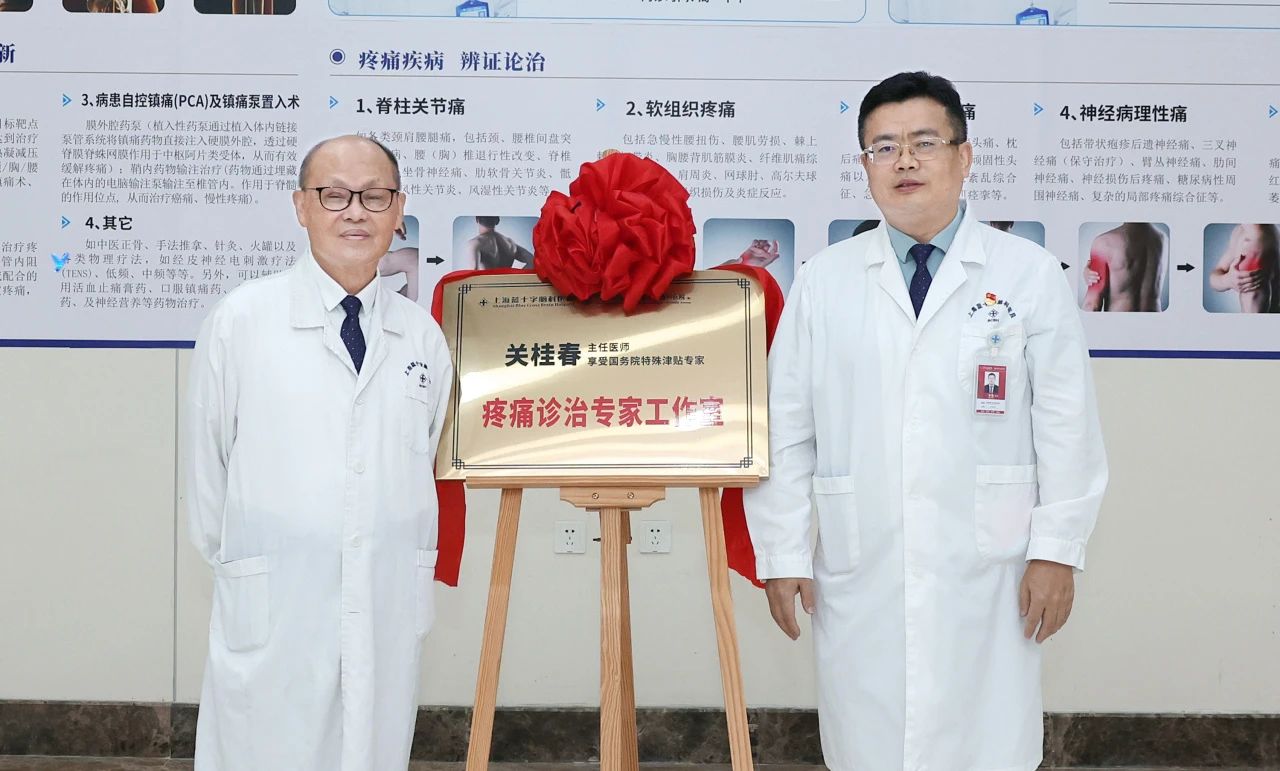 5月26日,上海藍(lán)十字腦科醫(yī)院“關(guān)桂春疼痛診治專家工作室”正式揭牌成立。醫(yī)院總經(jīng)理兼黨支部書記朱敏,副院長潘耀良、周克祥,副總經(jīng)理吳春芳等院領(lǐng)導(dǎo),以及疼痛科專家、門診部負(fù)責(zé)人等出席揭牌儀式。