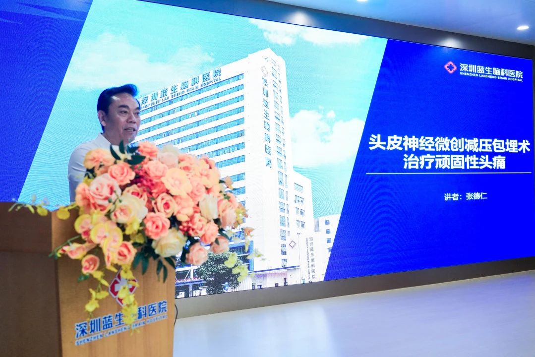深圳藍生腦科醫(yī)院執(zhí)行院長張德仁分享了《頭皮神經微創(chuàng)減壓包埋術治療頑固性頭痛》的創(chuàng)新技術,展示了這一微創(chuàng)手術在治療頑固性頭痛方面的顯著療效和臨床應用前景,引發(fā)了在場專家的濃厚興趣和熱烈討論。