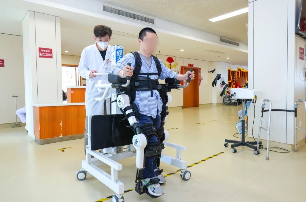 在康復(fù)大廳,一名下肢運(yùn)動(dòng)障礙患者穿戴著外骨骼機(jī)器人正在練習(xí)行走。這臺(tái)頗為“科幻”的設(shè)備融合了傳感、控制、信息、移動(dòng)計(jì)算等技術(shù),相關(guān)康復(fù)數(shù)據(jù)與上海天佑醫(yī)院的康復(fù)大屏和康復(fù)管理系統(tǒng)連接,協(xié)助醫(yī)生進(jìn)行治療全過(guò)程的信息化、數(shù)字化和智能化管理。