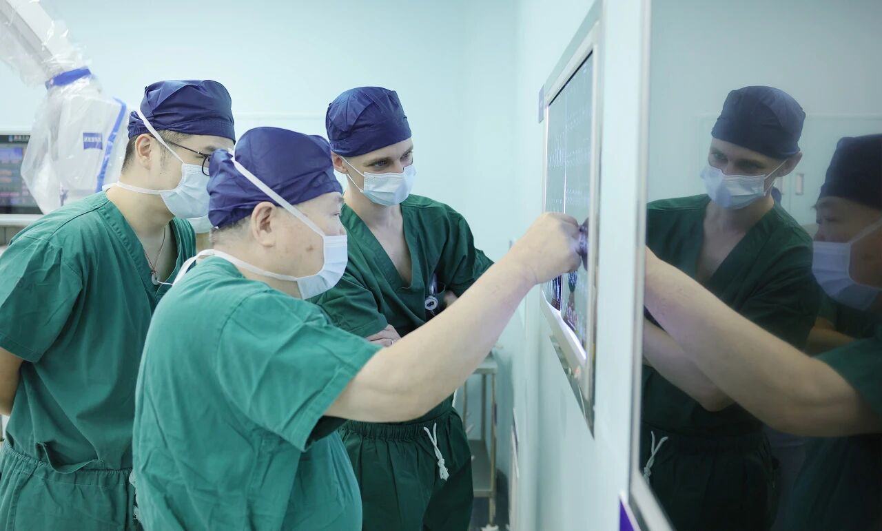 手術過程中,藍十字團隊展現(xiàn)了流暢的操作流程、對器械特性的深刻理解以及應對復雜血管條件的嫻熟技巧。Tareq Kass-Hout副教授對“零交換”技術帶來的操作簡化、效率提升及潛在風險降低表示出濃厚興趣,并在術后與手術團隊就技術細節(jié)、適應證把握以及圍手術期管理要點進行了深入交流。他對藍十字在腦血管介入領域展現(xiàn)出的技術水準和創(chuàng)新能力給予了高度評價,認為這為雙方未來在該領域開展更具體的技術合作與聯(lián)合研究提供了堅實的實踐基礎。