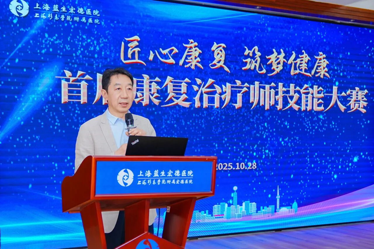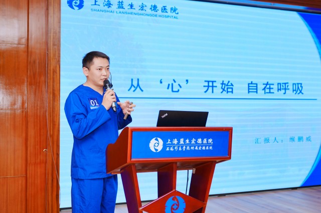 上海藍(lán)生宏德醫(yī)院周宏宇院長、林志強(qiáng)總經(jīng)理等領(lǐng)導(dǎo)、病區(qū)科主任、機(jī)關(guān)相關(guān)職能部門負(fù)責(zé)人和康復(fù)治療師等參會(huì)聆聽。大賽由康復(fù)醫(yī)學(xué)科主任王偉祥教授主持。