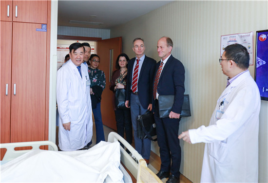 Prof.Dr.Michael Bolker一行先后參觀醫(yī)院門診大廳、中藥房、神經內科病房、腦復蘇中心、新康復科大廳、放射檢驗大廳等。