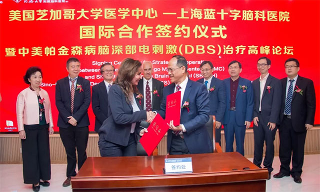 10月29日,芝加哥大學(xué)醫(yī)學(xué)中心 ( The University of Chicago Medicine,簡(jiǎn)稱:芝大醫(yī)學(xué)中心 UCM ) —上海藍(lán)十字腦科醫(yī)院國(guó)際合作簽約儀式暨中美帕金森病腦深部電刺激(DBS)治療高峰論壇在上海藍(lán)十字腦科醫(yī)院成功舉行。全天議程共有三項(xiàng),具體為:雙方洽談及病例討論、國(guó)際合作簽約儀式,中美醫(yī)學(xué)專家關(guān)于帕金森病腦深部電刺激 (DBS) 治療高峰論壇。