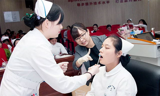 永田彩老師強(qiáng)調(diào),臨床一線護(hù)士除了熟練掌握口腔護(hù)理的理論知識(shí)外,實(shí)操同樣不可少。堅(jiān)持每天定時(shí)、定點(diǎn)對(duì)患者進(jìn)行口腔護(hù)理,會(huì)讓患者的口腔更健康,能更好地防治吸入性肺炎及相關(guān)并發(fā)癥,對(duì)患者的安全也是極大的保障。在她的言傳身教下,實(shí)操現(xiàn)場(chǎng)互動(dòng)踴躍,護(hù)理同仁兩兩結(jié)對(duì),取長(zhǎng)補(bǔ)短、互學(xué)互進(jìn),將理論知識(shí)與現(xiàn)場(chǎng)實(shí)操有機(jī)結(jié)合,受到永田彩老師的頻頻贊揚(yáng)。