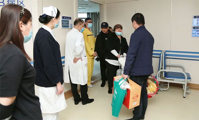 3月17日下午,家屬來醫(yī)院接小莫夫婦回家。此時,面對小莫家屬,潘仁龍主任深情地說道:“我們已經(jīng)治好了小莫,現(xiàn)在我把他完完整整還給你們了,以后他可以繼續(xù)做自己想做的公益事業(yè),繼續(xù)救助更多需要幫助的人......”