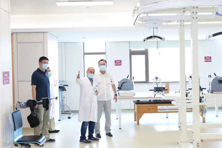 康復(fù)大廳內(nèi),醫(yī)院副院長(zhǎng)、康復(fù)醫(yī)學(xué)科主任陶泉介紹科室運(yùn)行情況。一系列先進(jìn)的康復(fù)設(shè)備、理療設(shè)備及專業(yè)的康復(fù)指導(dǎo)作業(yè),受到來(lái)訪專家們好評(píng)。