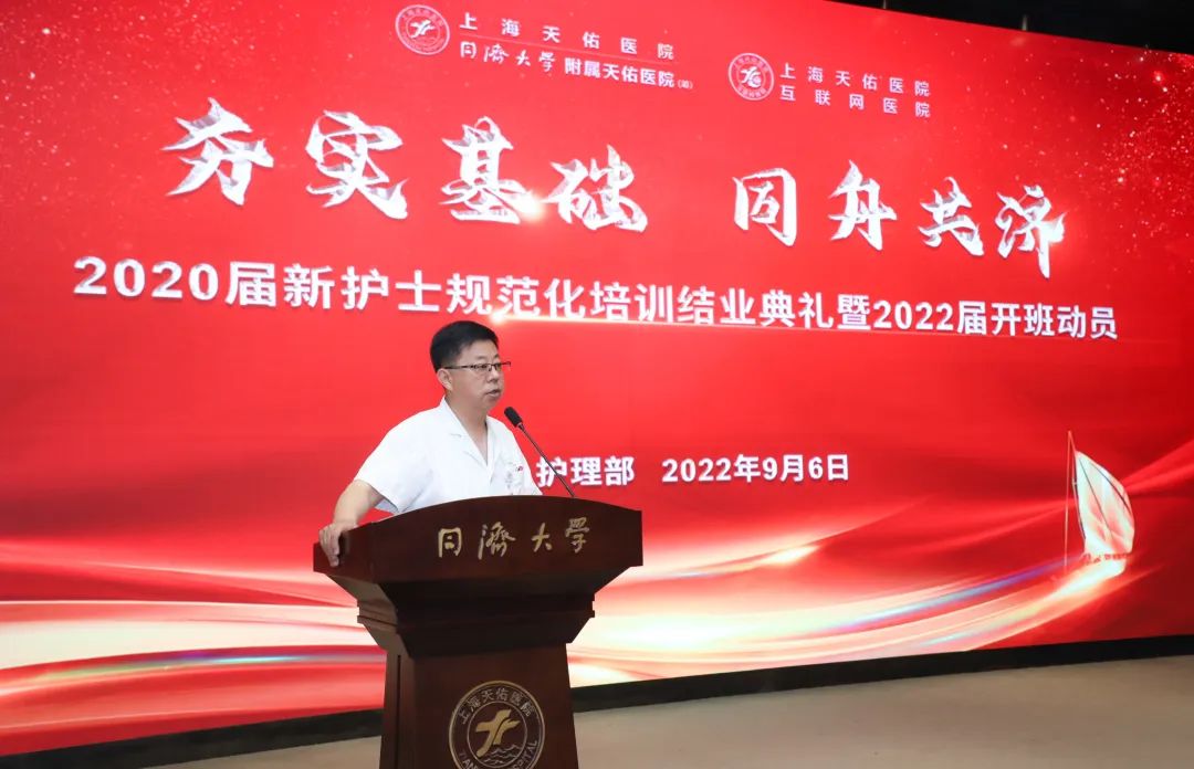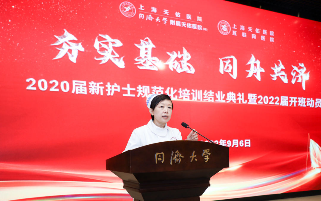 9月6日,上海天佑醫(yī)院護(hù)理部組織召開“夯實基礎(chǔ) 同舟共濟(jì)”2020屆新護(hù)士規(guī)范化培訓(xùn)結(jié)業(yè)典禮暨2022屆新護(hù)士規(guī)范化培訓(xùn)開班動員會。天佑醫(yī)院院長蔡劍飛、總經(jīng)理卓立峰,副院長、護(hù)理部主任劉瑋琳出席會議,全院護(hù)士長、帶教老師和參加規(guī)培的護(hù)士參會。會上,對優(yōu)秀帶教老師、優(yōu)秀學(xué)員和在技能比賽中獲獎的護(hù)士進(jìn)行了表彰,還舉行了新護(hù)士授帽儀式。