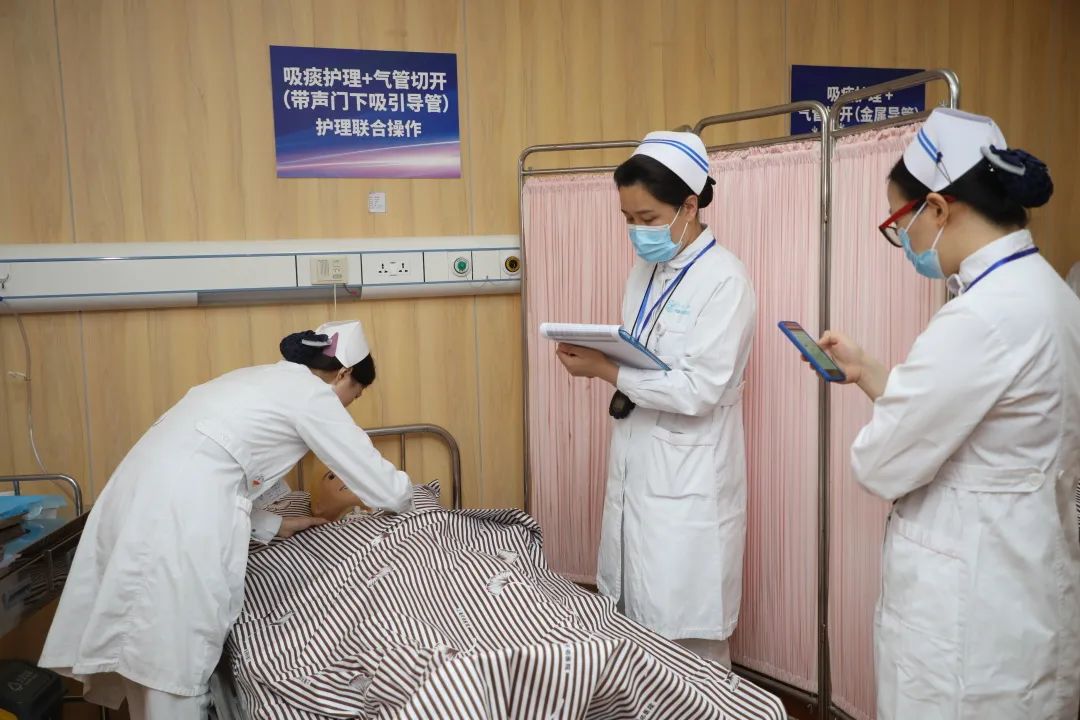 為檢驗護(hù)士們實際操作能力和技術(shù)水平,8月下旬,護(hù)理部組織開展“2022年度護(hù)理聯(lián)合操作技能競賽”,來自各科室的2021屆護(hù)理人員進(jìn)行了“技能PK”。競賽項目包括“吸痰護(hù)理+氣管切開(帶聲門下吸引導(dǎo)管)護(hù)理聯(lián)合操作、吸痰護(hù)理+氣管切開(金屬導(dǎo)管)護(hù)理聯(lián)合操作、胃管置入技術(shù)+鼻飼護(hù)理技術(shù)聯(lián)合操作”三項內(nèi)容。