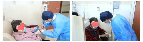 “扎針哪有不痛的呀!不過也有訣竅可以緩解。”張福英調(diào)皮地說。“身心護(hù)理”不僅指執(zhí)行醫(yī)囑的治療護(hù)理,更要注重對(duì)患者心理的護(hù)理。一方面做好溝通,提前告知患者藥物的作用;另一方面尊重患者,多用敬語,語氣溫和,發(fā)自內(nèi)心地去關(guān)心他們的病情。醫(yī)患和諧,就變成水到渠成的事情了。一些老年患者,血管狀況差,穿刺困難,除了扎實(shí)的基本功外,“小竅門”就是建立起信任感,盡量用合適的話語去分散他們的注意力,這樣往往可以起到事半功倍的效果。
