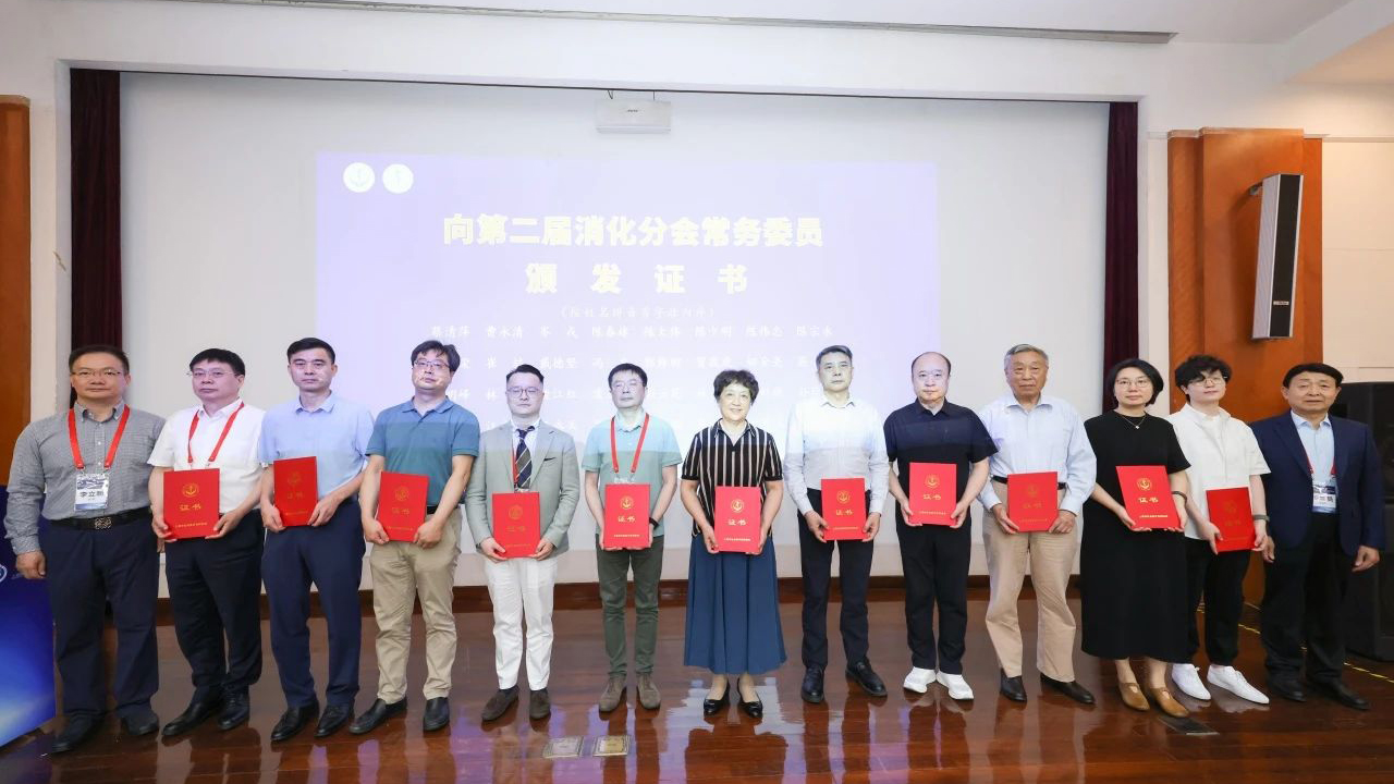 上海市社會醫(yī)療機構(gòu)協(xié)會會長閆東方等領(lǐng)導(dǎo)為第二屆消化分會會長、副會長、常委、委員們頒發(fā)證書。