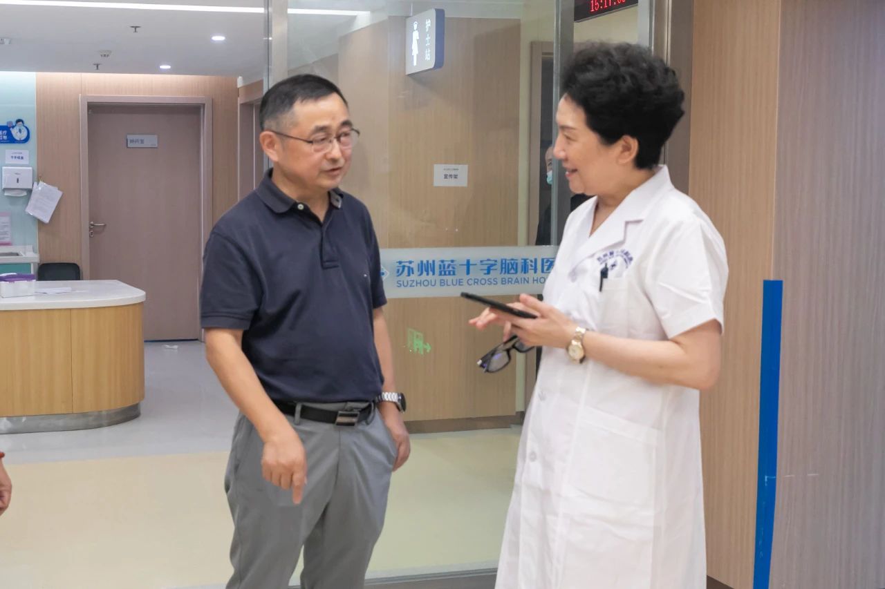 8月27日下午,劉春風院長率黃金忠副院長和蘇州藍十字腦科醫(yī)院神經(jīng)內(nèi)科魏亞芬教授、王紅艷主任聯(lián)合開展神經(jīng)內(nèi)科教學大查房,蘇州藍十字腦科醫(yī)院劉金爐總經(jīng)理、張偉副院長、吳高雄副總經(jīng)理陪同參與教學查房。