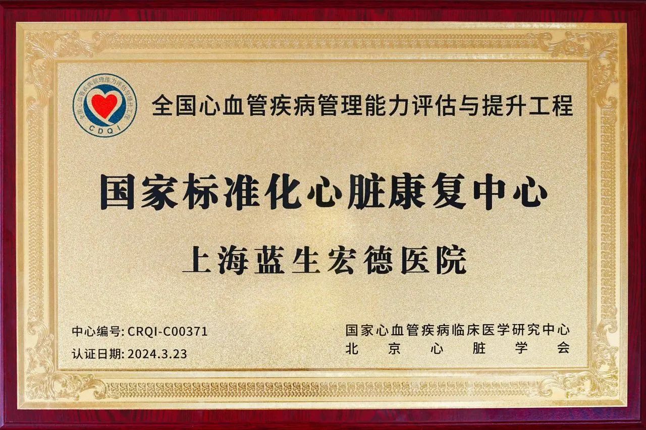 8月31日,2024年中國康復醫(yī)學會心血管疾病與康復專業(yè)委員會學術年會在吉林長春召開。會上,舉行了全國第八批心臟康復中心認證單位授牌儀式,上海藍生宏德醫(yī)院被授予“國家標準化心臟康復中心”牌匾,標志著醫(yī)院在心血管疾病預防、治療與康復領域邁上了新的臺階。