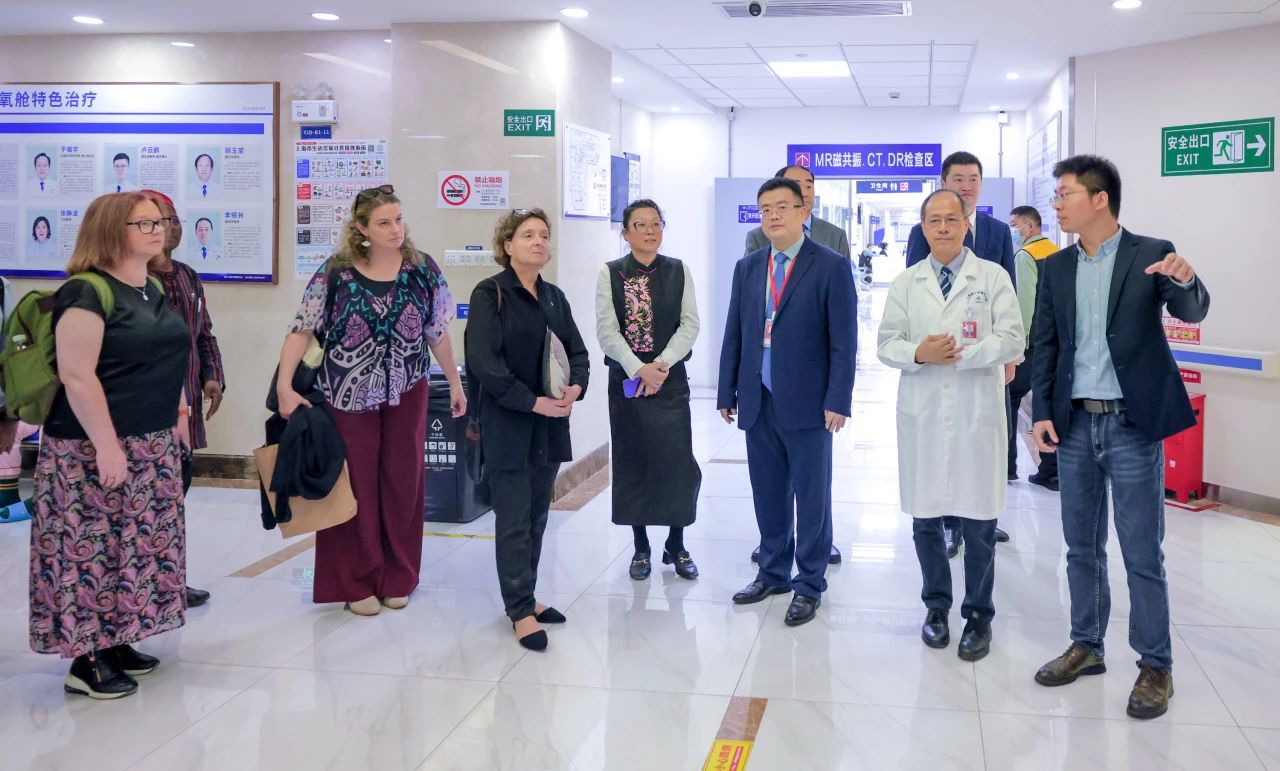 專家代表一行抵達(dá)醫(yī)院后,實(shí)地參觀了醫(yī)院9F重癥醫(yī)學(xué)科、8B神經(jīng)內(nèi)七科、7A神經(jīng)內(nèi)三科、高壓氧科、影像科、放療科等重點(diǎn)特色科室。