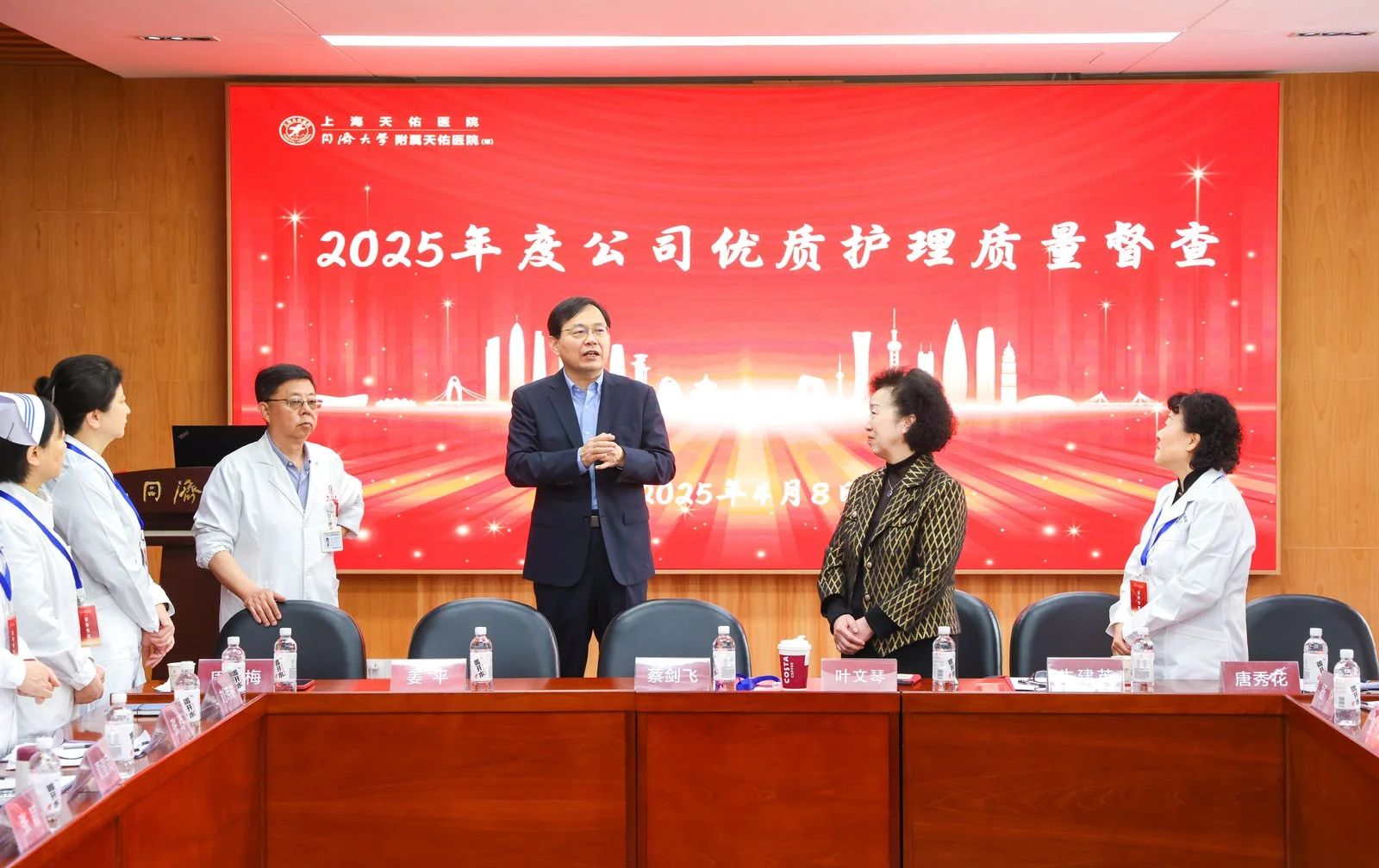 4月8日至9日,公司優(yōu)質(zhì)護理質(zhì)量督查組在副總裁葉文琴帶領(lǐng)下,赴上海天佑醫(yī)院開展2025年度優(yōu)質(zhì)護理質(zhì)量督查。督查組成員包括公司醫(yī)療管理部護理質(zhì)量督導(dǎo)主任朱建英、醫(yī)療管理部總監(jiān)唐秀花、護理總監(jiān)周詠梅教授,公司旗下五家醫(yī)院護理部主任、感控科科長和總護士長。此次督查以“精準評估、閉環(huán)管理、持續(xù)改進”為目標,通過全流程督導(dǎo)推動集團醫(yī)院護理標桿病區(qū)建設(shè)。公司董事長卓立強、上海天佑醫(yī)院院長蔡劍飛等領(lǐng)導(dǎo)出席督查座談會并講話。