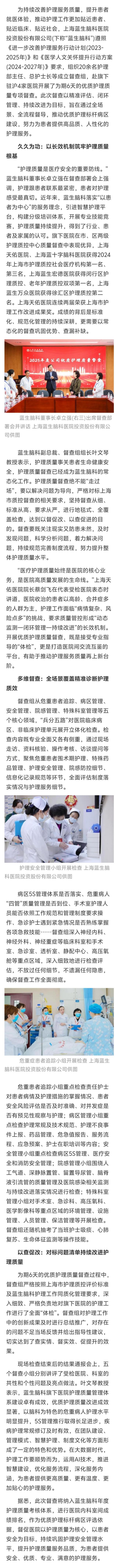 為持續(xù)改善護理服務(wù)質(zhì)量,提升患者就醫(yī)體驗,推動護理工作更加貼近患者、貼近臨床、貼近社會,上海藍生腦科醫(yī)院投資股份有限公司(下稱“藍生腦科”)遵照《進一步改善護理服務(wù)行動計劃(2023-2025年)》和《醫(yī)學(xué)人文關(guān)懷提升行動方案(2024-2027年)》要求,組織20余名護理部主任、總護士長等成立督查組,赴旗下駐滬4家醫(yī)院開展了為期6天的優(yōu)質(zhì)護理質(zhì)量專項督查。此次督查以精準評估、閉環(huán)管理、持續(xù)改進為目標,旨在通過全場景、全流程督導(dǎo),推動優(yōu)質(zhì)護理標桿病區(qū)建設(shè),努力為患者提供高品質(zhì)、人性化的護理服務(wù)。