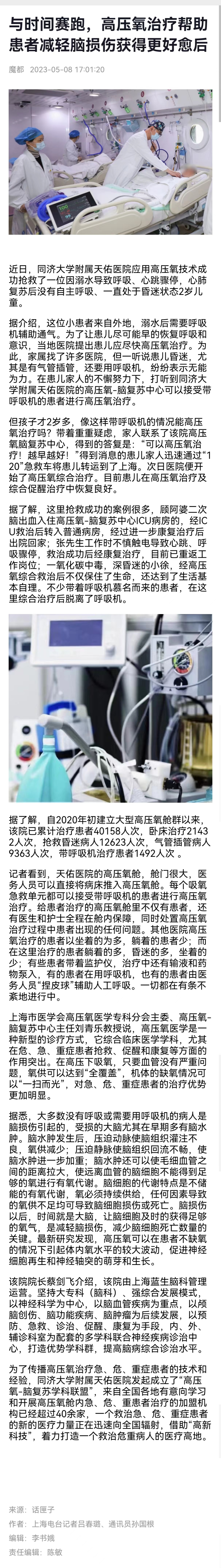 近日,同濟大學(xué)附屬天佑醫(yī)院應(yīng)用高壓氧技術(shù)成功搶救了一位因溺水導(dǎo)致呼吸、心跳驟停,心肺復(fù)蘇后沒有自主呼吸、一直處于昏迷狀態(tài)2歲兒童。