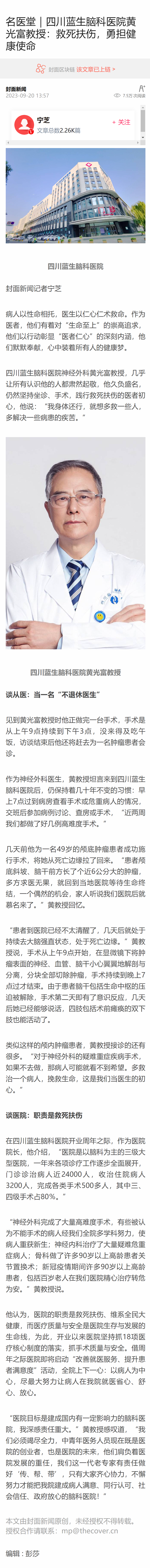 四川藍(lán)生腦科醫(yī)院神經(jīng)外科黃光富教授,幾乎讓所有認(rèn)識(shí)他的人都肅然起敬,他久負(fù)盛名,仍然堅(jiān)持坐診、手術(shù),踐行救死扶傷的醫(yī)者初心,他說(shuō):“我身體還行,就想多救一些人,多解決一些病患的疾苦。