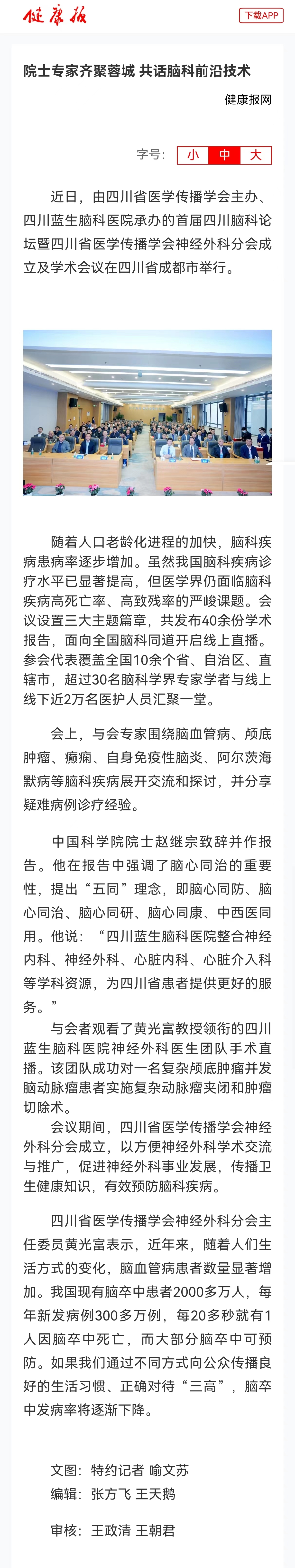 近日,由四川省醫(yī)學(xué)傳播學(xué)會主辦、四川藍生腦科醫(yī)院承辦的首屆四川腦科論壇暨四川省醫(yī)學(xué)傳播學(xué)會神經(jīng)外科分會成立及學(xué)術(shù)會議在四川省成都市舉行。