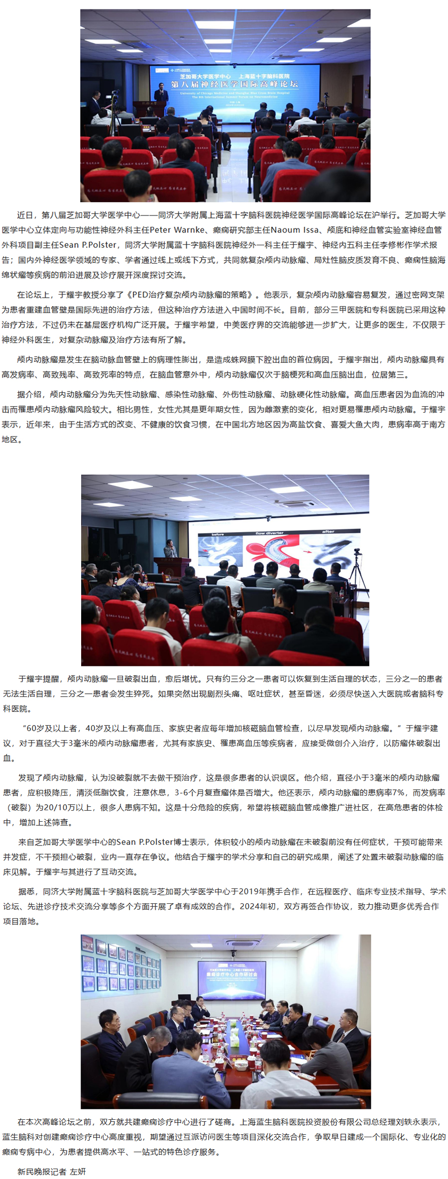 近日,第八屆芝加哥大學醫(yī)學中心——同濟大學附屬上海藍十字腦科醫(yī)院神經(jīng)醫(yī)學國際高峰論壇在滬舉行。芝加哥大學醫(yī)學中心立體定向與功能性神經(jīng)外科主任Peter Warnke、癲癇研究部主任Naoum Issa、顱底和神經(jīng)血管實驗室神經(jīng)血管外科項目副主任Sean P.Polster,同濟大學附屬藍十字腦科醫(yī)院神經(jīng)外一科主任于耀宇、神經(jīng)內(nèi)五科主任李修彬作學術(shù)報告......