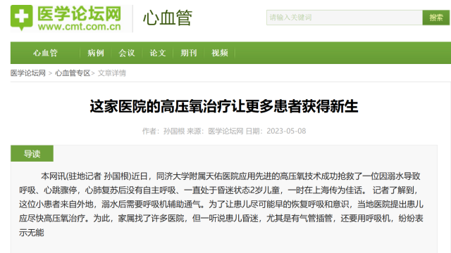 醫(yī)學(xué)論壇網(wǎng):這家醫(yī)院的高壓氧治療讓更多患者獲得新生