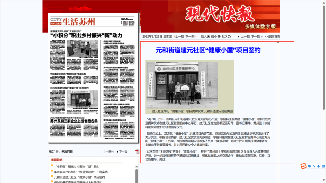 現(xiàn)代快報:元和街道建元社區(qū)“健康小屋”項目簽約