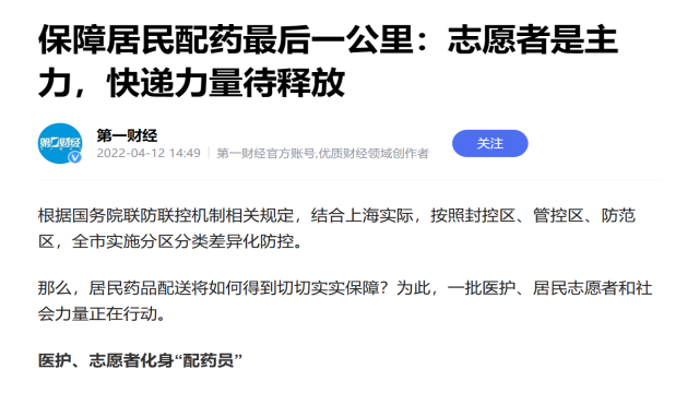 第一財經(jīng):保障居民配藥最后一公里:志愿者是主力,快遞力量待釋放