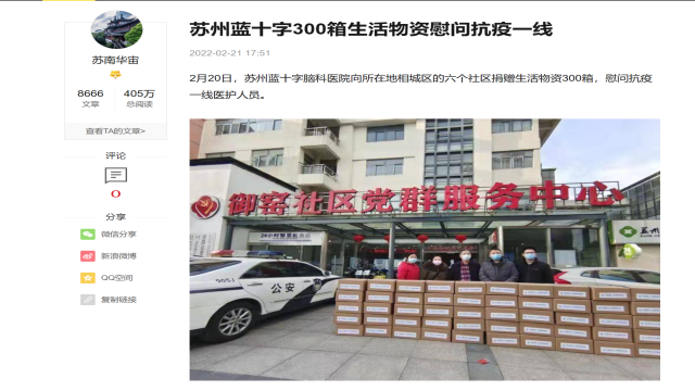 中國(guó)蘇南視窗:蘇州藍(lán)十字300箱生活物資慰問(wèn)抗疫一線