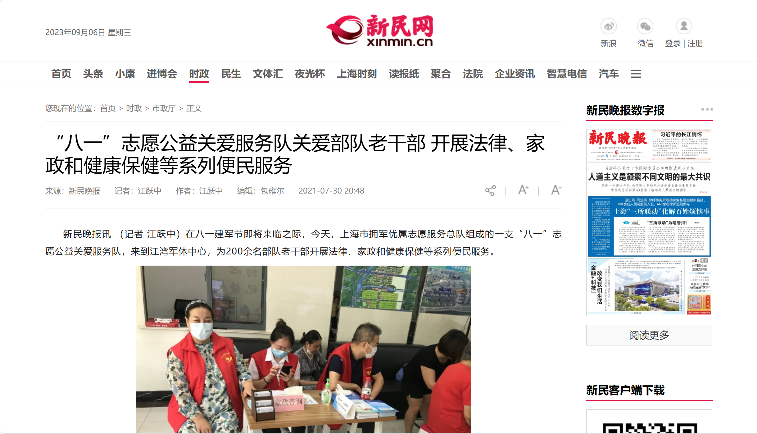 新民網(wǎng):“八一”志愿公益關(guān)愛服務(wù)隊(duì)關(guān)愛部隊(duì)老干部 開展法律、家政和健康保健等系列便民服務(wù)