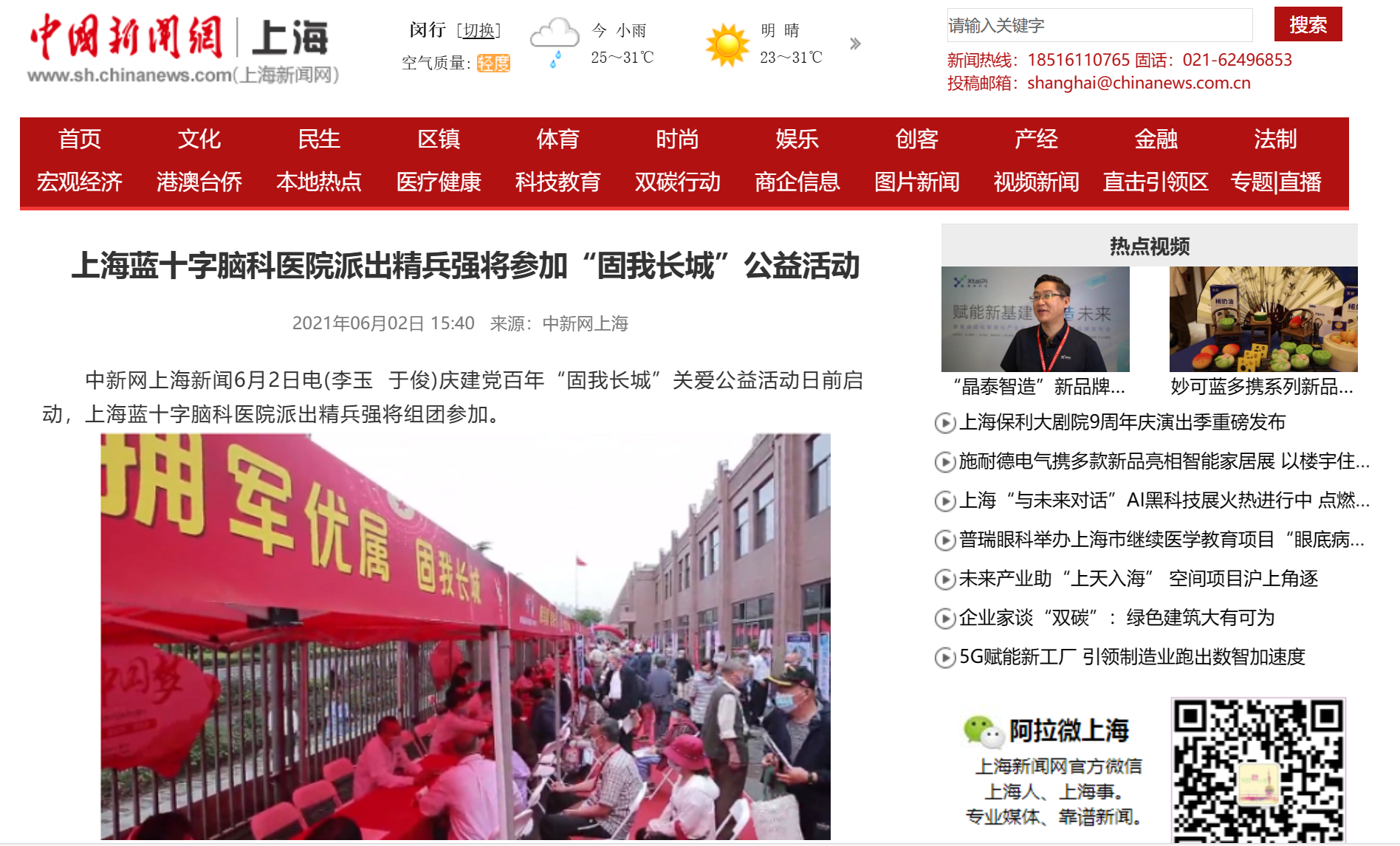 中新網(wǎng)上海:上海藍(lán)十字腦科醫(yī)院派出精兵強(qiáng)將參加“固我長(zhǎng)城”公益活動(dòng)
