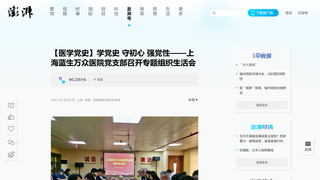 徐匯衛(wèi)生健康、澎湃網(wǎng):上海藍(lán)生萬(wàn)眾醫(yī)院黨支部召開專題組織生活會(huì)