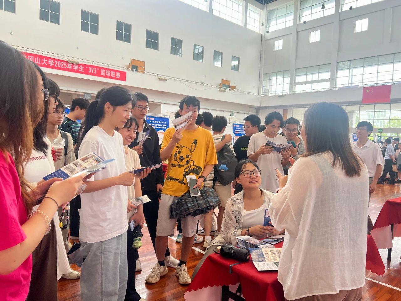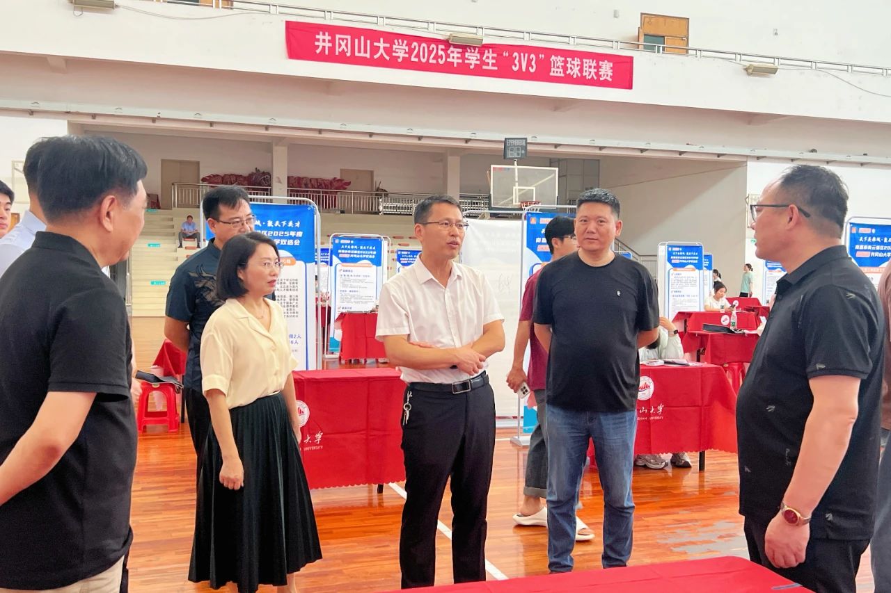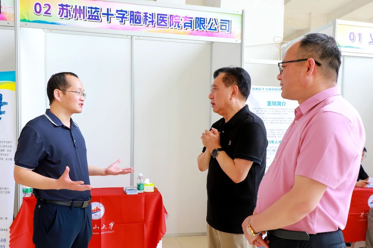 △ 井岡山大學(xué)黨委常委、副校長冷明(中)與醫(yī)院代表在招聘會(huì)會(huì)面