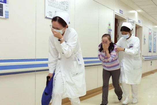 緊急疏散:科室消防安全員高效組織病區(qū)患者及家屬疏散。對(duì)于行動(dòng)不便者,采用擔(dān)架抬運(yùn)、背負(fù)或輪椅轉(zhuǎn)運(yùn)等多種方式,沿預(yù)設(shè)的A區(qū)(寶南路)、B區(qū)(七莘路)雙安全通道,迅速轉(zhuǎn)移至指定集合點(diǎn)。