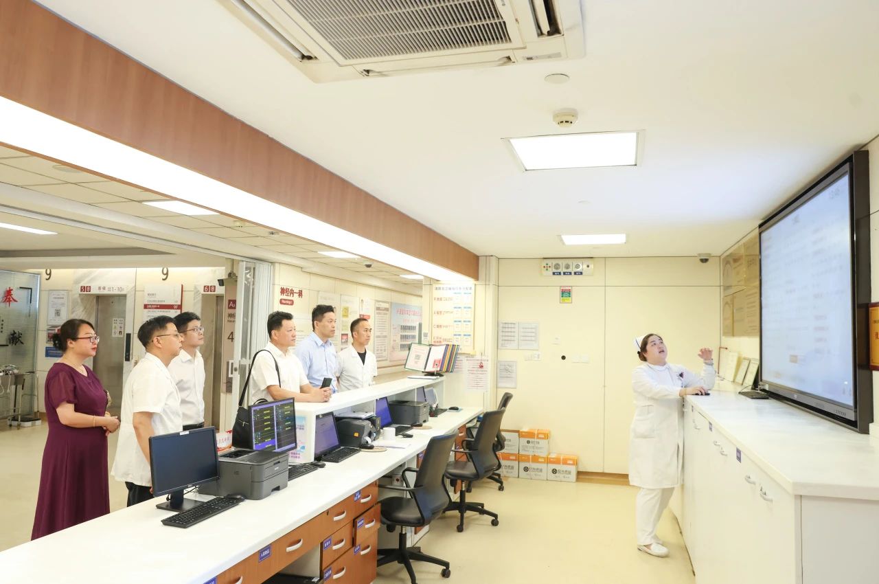 領(lǐng)導(dǎo)們一行先后到放療科、高壓氧艙、NICU、康復(fù)大廳及多個病區(qū)參觀考察。每到一處,蔡劍飛院長都進(jìn)行詳細(xì)介紹,讓大家實(shí)地了解醫(yī)院的功能布局、設(shè)備設(shè)施、智慧醫(yī)院建設(shè)等情況。