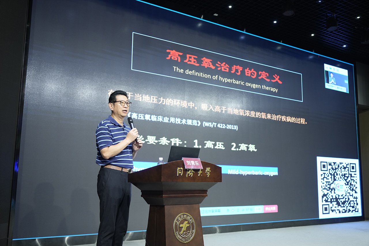 開(kāi)班式后,中華醫(yī)學(xué)會(huì)高壓氧醫(yī)學(xué)分會(huì)副主任委員、上海天佑醫(yī)院高壓氧腦復(fù)蘇中心主任劉青樂(lè)教授帶來(lái)了《高壓氧技術(shù)在危重癥患者治療中的應(yīng)用進(jìn)展》專題講座,系統(tǒng)講解了高壓氧治療的定義、高壓氧對(duì)機(jī)體的作用、高壓氧治療的安全性及相對(duì)禁忌癥等,強(qiáng)調(diào)通過(guò)技術(shù)創(chuàng)新可以突破高壓氧治療的“禁忌”,幫助危重癥患者在高壓氧艙內(nèi)轉(zhuǎn)危為安。