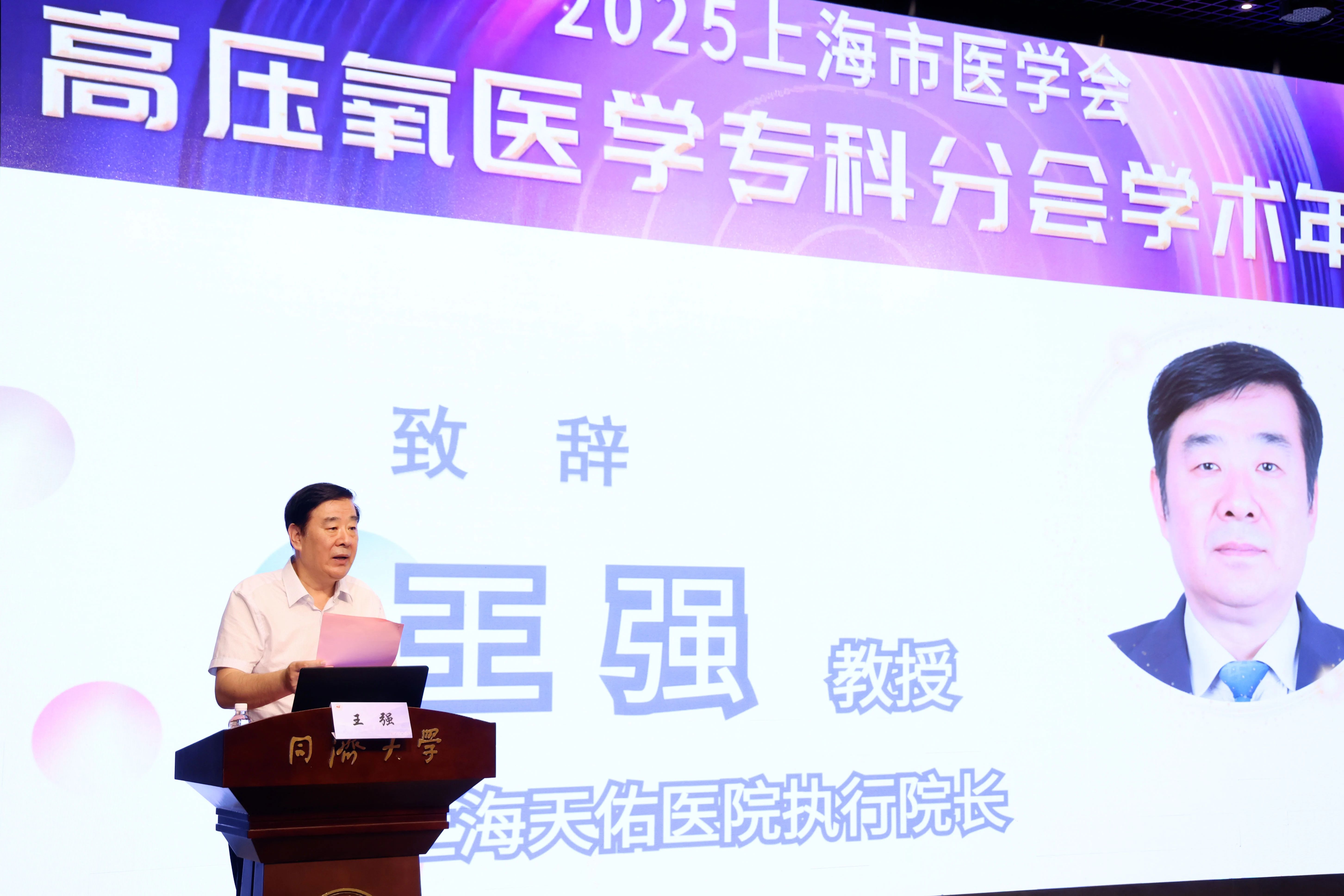 王強(qiáng)執(zhí)行院長為大會(huì)致辭。他介紹,上海天佑醫(yī)院一直高度重視高壓氧醫(yī)學(xué)的進(jìn)步與發(fā)展,建立了由高壓氧治療科、NICU病房、神經(jīng)內(nèi)(外)科、心血管內(nèi)科、呼吸內(nèi)科、康復(fù)醫(yī)學(xué)科、中醫(yī)科等多學(xué)科聯(lián)合平臺(tái),組建了以劉青樂教授領(lǐng)銜的專業(yè)團(tuán)隊(duì),通過引進(jìn)大型高端方型艙、創(chuàng)建高規(guī)格的腦復(fù)蘇病房,為急危重癥患者的搶救、診治和昏迷患者的促醒提供了良好的軟硬件保障。高壓氧危重癥治療專科于2024年被評(píng)為上海市??朴绊懥ζ放?。天佑醫(yī)院發(fā)起成立的高壓氧腦復(fù)蘇學(xué)科聯(lián)盟吸引了全國知名公立三甲、二甲醫(yī)院加盟,成為享譽(yù)全國的高壓氧腦復(fù)蘇學(xué)科品牌。該聯(lián)盟成立以來,通過線上學(xué)術(shù)交流會(huì)、線下授牌授課等活動(dòng),不斷加強(qiáng)與成員單位間的溝通交流和技術(shù)指導(dǎo),提升了成員單位危重癥醫(yī)學(xué)、高壓氧治療和腦復(fù)蘇學(xué)科水平。