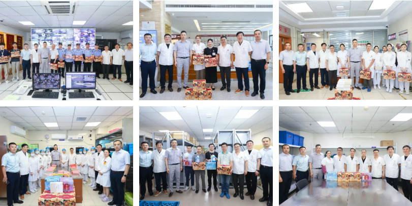 在高溫季,上海天佑醫(yī)院住院患者滿員,門急診時常排起長龍。為了讓患者及時就診,保證住院病人安全,醫(yī)務(wù)工作者們高溫不下“火”線。8月14日,工會發(fā)起高溫慰問活動,院領(lǐng)導班子成員分頭下臨床一線,先后到急診、靜配室、門診預檢、司機班、藥庫、保安室等地看望一線工作人員,并送上慰問品。