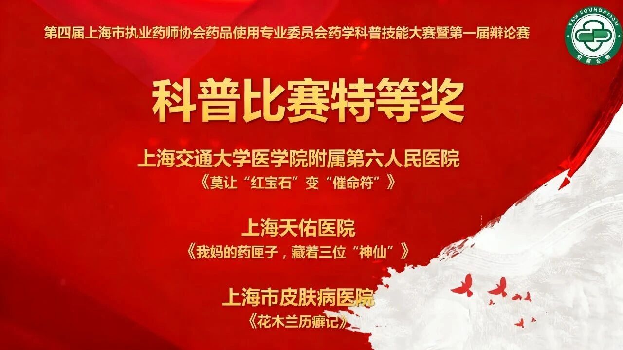 在此次大賽前的10月22日,由上海市藥學會主辦,上海市藥學會科技傳播專委會與醫(yī)院藥學專委會共同承辦的“藥‘滬’千萬家,共筑健康夢——上海市第三屆藥學科普大賽”圓滿收官。本次大賽作為全市醫(yī)藥科普領域的重要品牌活動,自7月啟動以來,吸引了全市醫(yī)藥行業(yè)各單位以及廣大醫(yī)藥科技工作者的廣泛關注和踴躍參與,由多家醫(yī)院、高校選送150余件參賽作品,最終22組參賽隊伍晉級。天佑醫(yī)院名列其中。