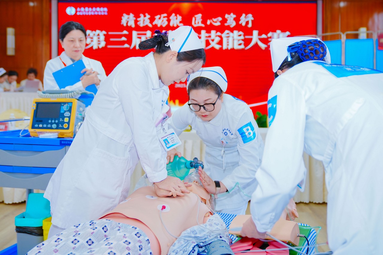 比賽圍繞“團(tuán)隊(duì)搶救協(xié)作”展開(kāi),從規(guī)范、熟練、人文等多維度進(jìn)行綜合評(píng)定,操作限時(shí)8分鐘。賽場(chǎng)上,各參賽團(tuán)隊(duì)精神飽滿、配合默契,以規(guī)范的操作和沉穩(wěn)的表現(xiàn),充分展現(xiàn)了醫(yī)護(hù)人員的專(zhuān)業(yè)素養(yǎng)與臨場(chǎng)應(yīng)變能力。