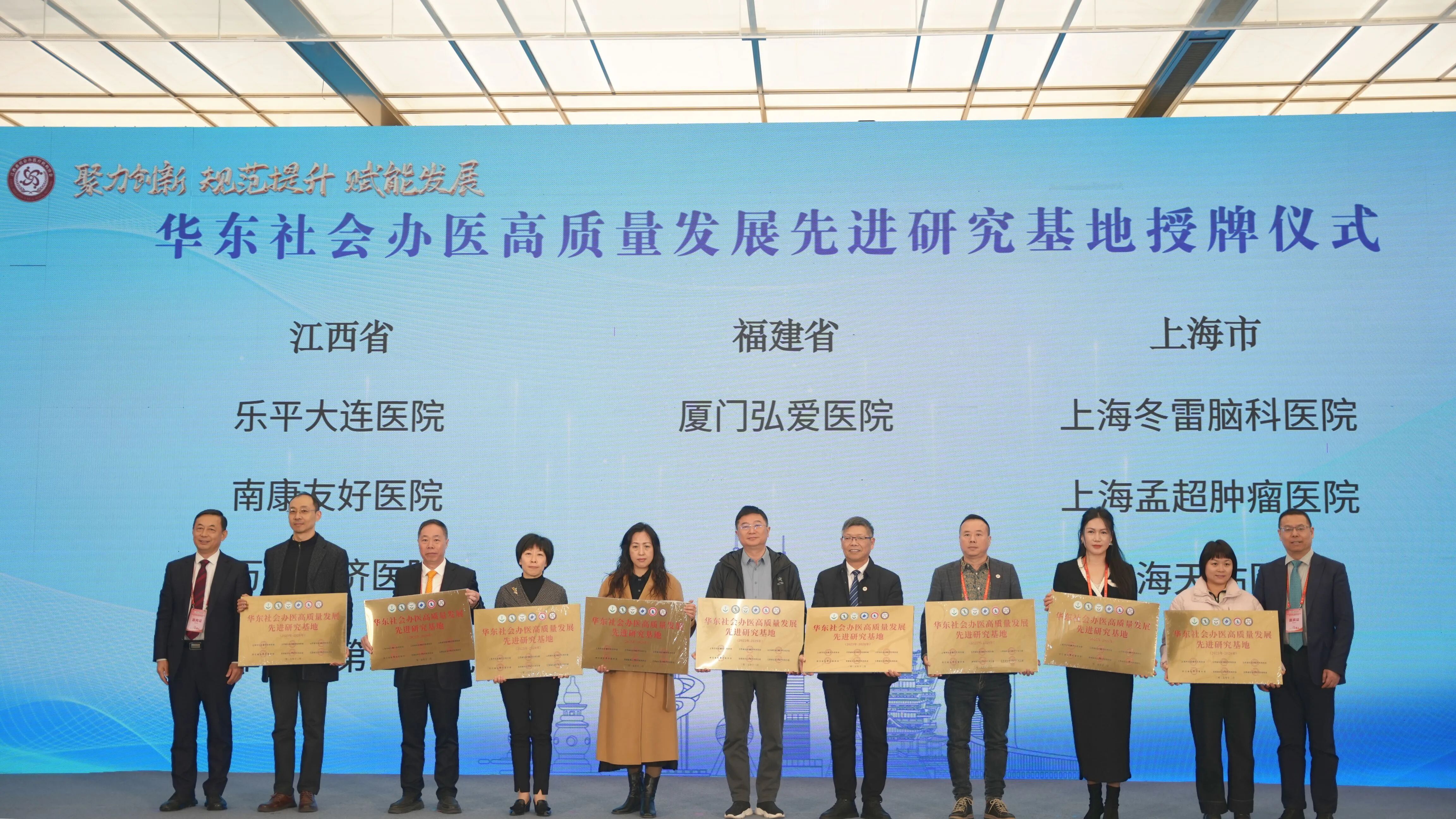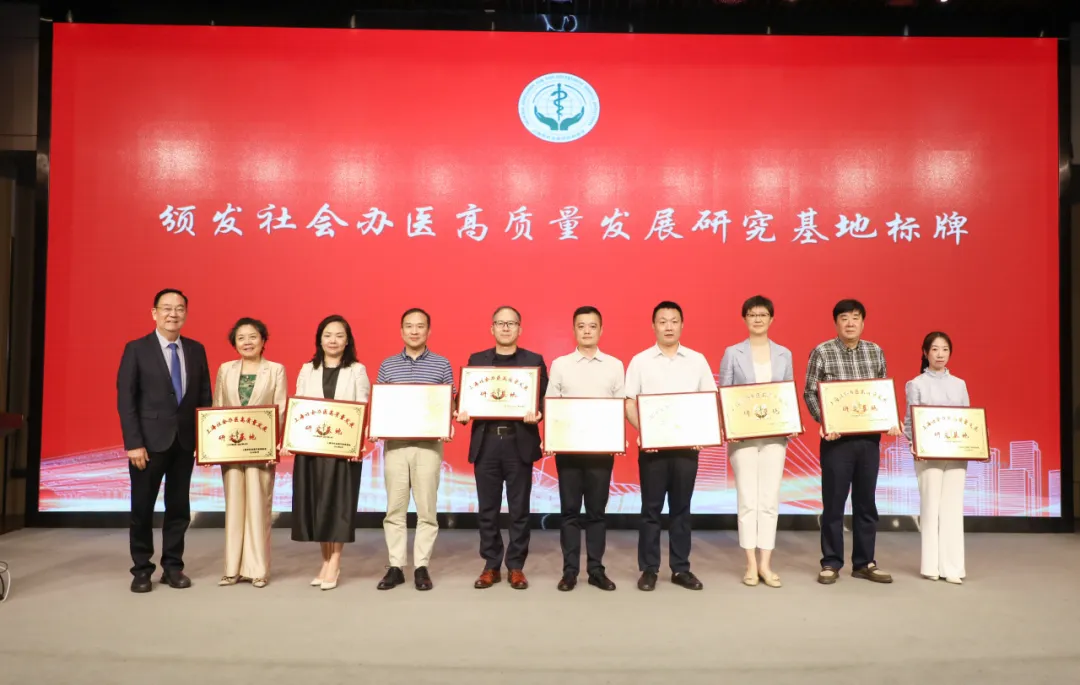 上海市社會辦醫(yī)高質(zhì)量發(fā)展研究基地授牌王強(qiáng)執(zhí)行院長(右二)代表醫(yī)院上臺領(lǐng)牌