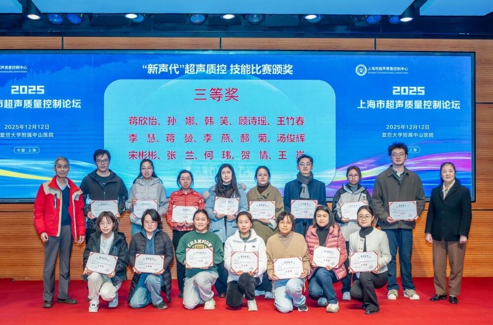 近日,從上海市超聲醫(yī)學(xué)質(zhì)量控制中心主辦的“2025年上海市超聲質(zhì)量控制中心年會暨‘新聲代’超聲質(zhì)控技能團(tuán)體賽”大會上獲悉:上海天佑醫(yī)院與同濟(jì)醫(yī)院、普陀區(qū)中心醫(yī)院聯(lián)合代表隊(duì)榮獲團(tuán)體三等獎(jiǎng),天佑醫(yī)院超聲科宋彬彬主治醫(yī)師榮獲個(gè)人三等獎(jiǎng)。