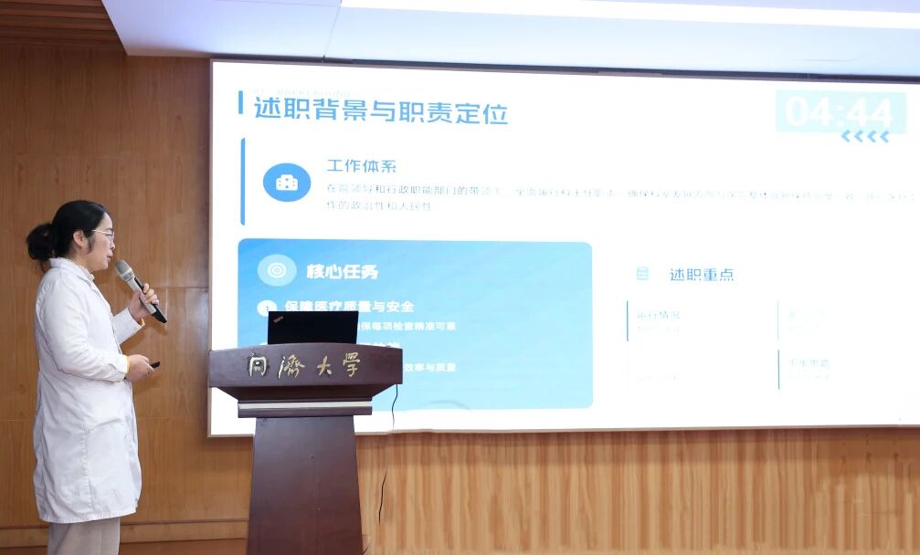 從述職中了解到:2025年,天佑醫(yī)院順利完成同濟(jì)大學(xué)新生培訓(xùn)、心肺復(fù)蘇實(shí)訓(xùn)及研修班教學(xué)任務(wù),聯(lián)合同濟(jì)大學(xué)申報(bào)的醫(yī)學(xué)+交叉研究項(xiàng)目取得進(jìn)展。神經(jīng)內(nèi)一科黃樹其主任獲上海市科技發(fā)展基金會(huì)醫(yī)工交叉專項(xiàng)立項(xiàng)1項(xiàng),實(shí)用新型專利授權(quán)1項(xiàng);內(nèi)分泌科獲1項(xiàng)實(shí)用新型專利授權(quán)。普外科、腎臟內(nèi)科、神經(jīng)內(nèi)二科和神經(jīng)內(nèi)三科等科主任展示了新技術(shù)應(yīng)用的成果。醫(yī)學(xué)影像、檢驗(yàn)、超聲和藥劑等科室通過技術(shù)和服務(wù)創(chuàng)新,實(shí)現(xiàn)從“輔助”到“協(xié)同”的定位升級(jí)。