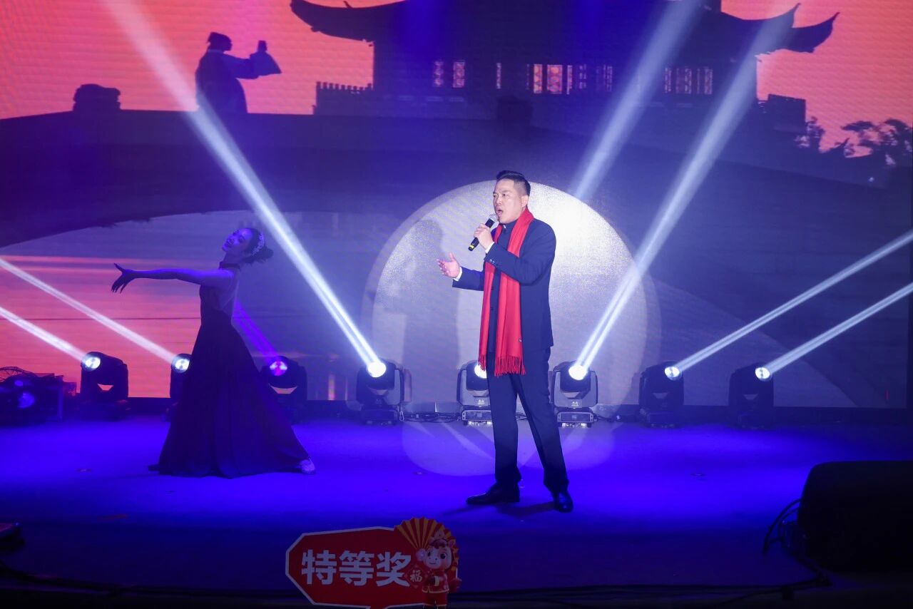 卓立峰總經(jīng)理的一曲《等待》,以深情豪邁的男高音獨(dú)唱與唯美伴舞,演繹出“每個夢里都有你的夢”的深情,傳遞出對美好明天和永恒春天的向往與期待。