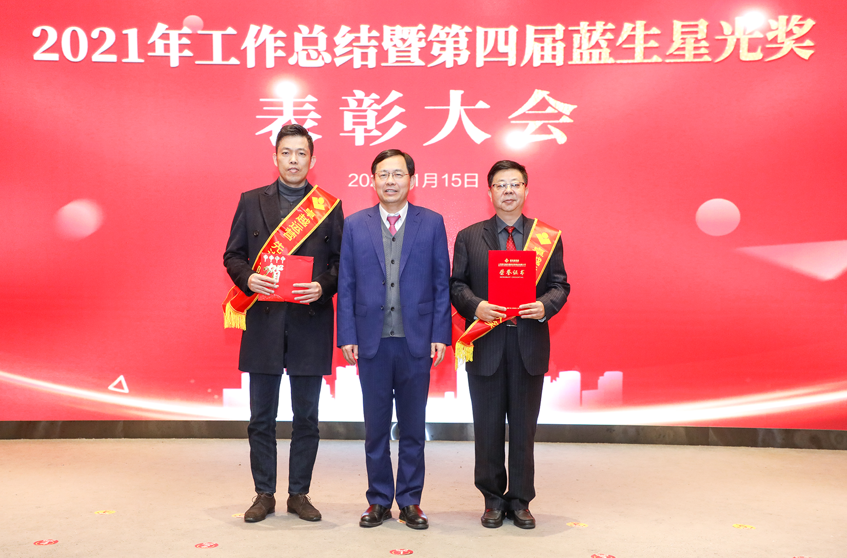 公司陳樹林書記宣讀《關(guān)于表彰2021年度“藍(lán)生星光獎”獲獎?wù)叩耐▓蟆?,表彰張宇峰?1名同志“經(jīng)營管理之星”、黃樹其等7名同志“學(xué)科貢獻(xiàn)之星”、沈原等11名同志“優(yōu)質(zhì)服務(wù)之星”、樊春霞等5名同志“忠誠敬業(yè)之星”和王瑩等9名同志“青年希望之星”。