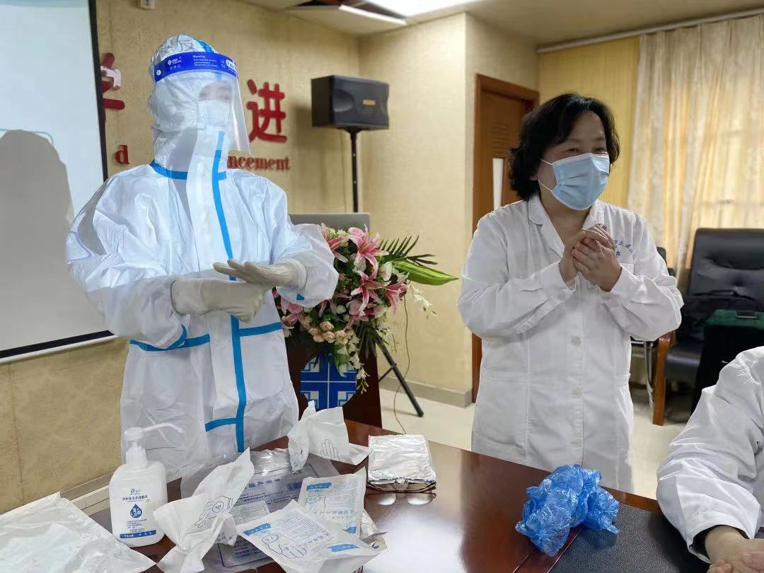 當(dāng)天下午,護(hù)理部主任楊麗萍為隊(duì)員們準(zhǔn)備防護(hù)物資,指導(dǎo)工作方案,開展防控培訓(xùn),確保操作流程標(biāo)準(zhǔn)、高效,防護(hù)到位。