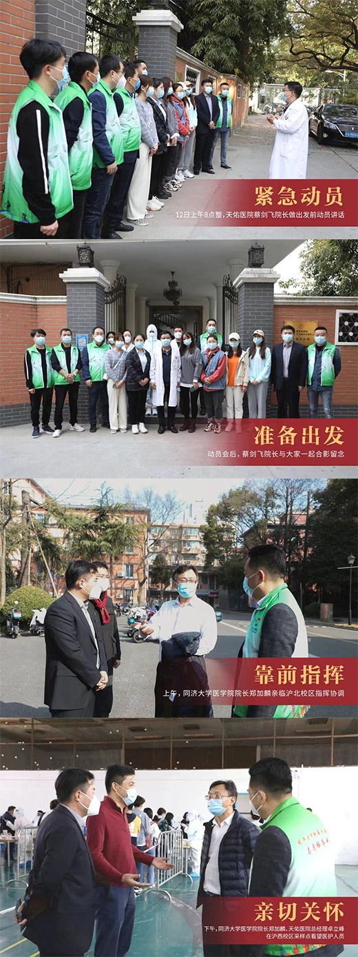 同濟大學醫(yī)學院院長鄭加麟分別在上午和下午,都親臨現(xiàn)場看望工作人員并指導、協(xié)調相關事宜。