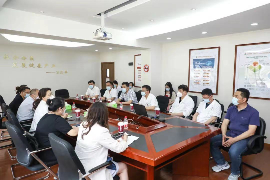 蔡劍飛院長(zhǎng)、卓立峰總經(jīng)理向區(qū)、鎮(zhèn)領(lǐng)導(dǎo)們的到來表示歡迎和感謝,并分別介紹了醫(yī)院在抗疫中的主要做法和成效、以及復(fù)工復(fù)診工作情況。