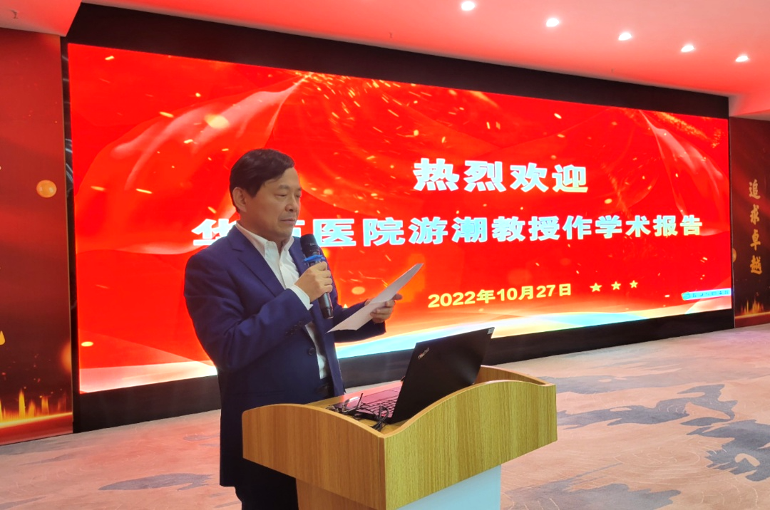 游潮教授接受聘任后,作《淺談民營(yíng)醫(yī)院建設(shè)與發(fā)展》專題報(bào)告。游教授的報(bào)告深入淺出,精彩生動(dòng),哲思涵養(yǎng),給予很多指導(dǎo)和啟迪。