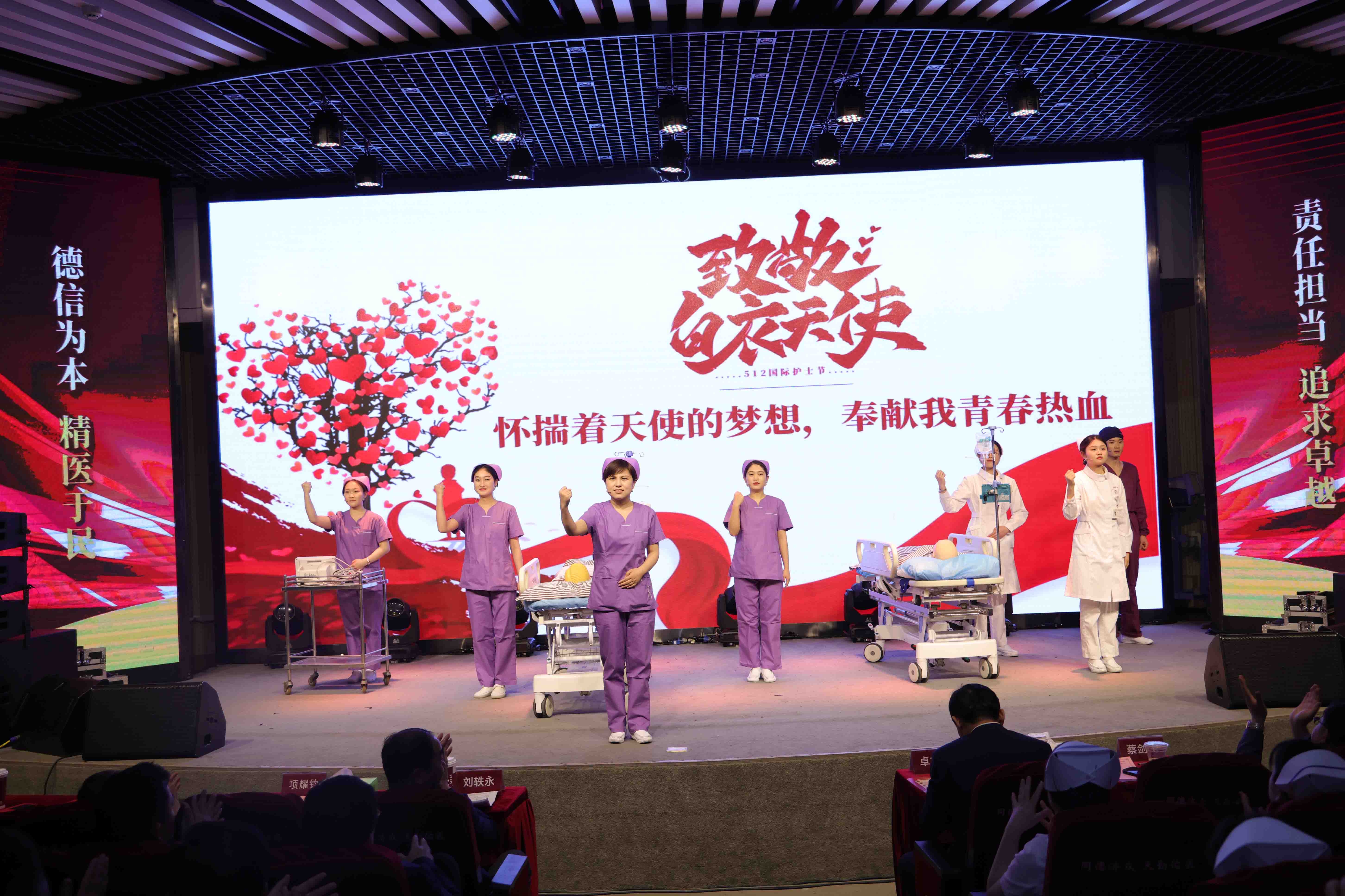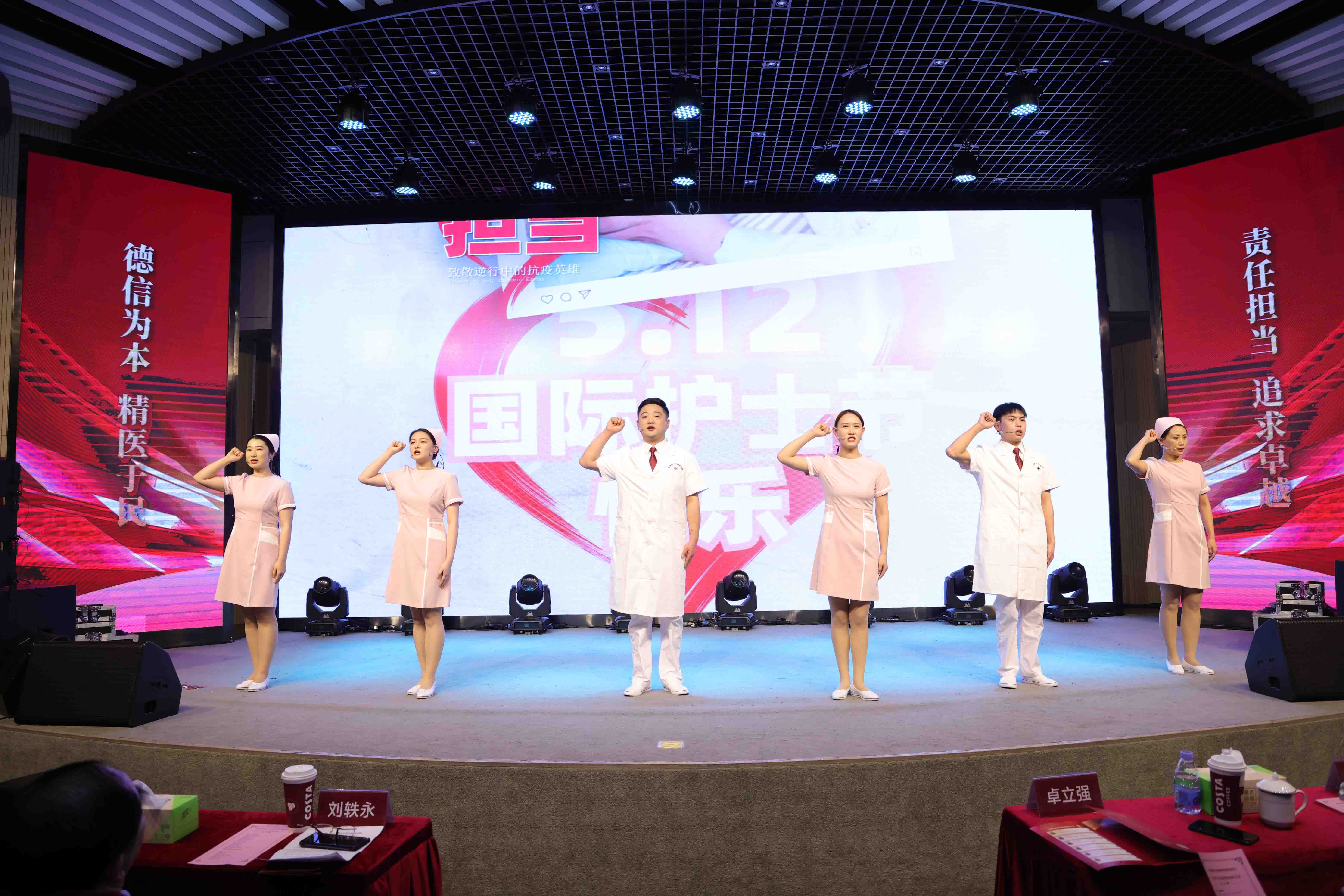 公司領(lǐng)導(dǎo)、機(jī)關(guān)干部,醫(yī)院、子公司班子成員,受表彰的優(yōu)秀集體代表、優(yōu)秀個(gè)人及護(hù)士代表、參賽人員共300余人參加。公司黨群工作部總監(jiān)韓杰、同濟(jì)大學(xué)附屬腦科醫(yī)院手術(shù)室副護(hù)士長(zhǎng)王亞萍主持。
