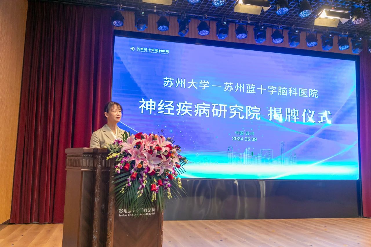 蘇州市相城區(qū)衛(wèi)健委主任孫偉為發(fā)表致辭。她表示,“蘇州大學(xué)-蘇州藍(lán)十字腦科醫(yī)院神經(jīng)疾病研究院”成功揭牌,彌補(bǔ)了相城區(qū)腦科學(xué)和腦醫(yī)學(xué)領(lǐng)域教學(xué)、科研、臨床有機(jī)結(jié)合的空白,為全區(qū)醫(yī)療衛(wèi)生事業(yè)發(fā)展注入了新的活力,為全區(qū)人民增添了健康福祉。同時(shí),她對(duì)開(kāi)辟“高校-區(qū)域”更大范圍、更高層次、更寬領(lǐng)域的協(xié)同發(fā)展提出了新的愿景。
